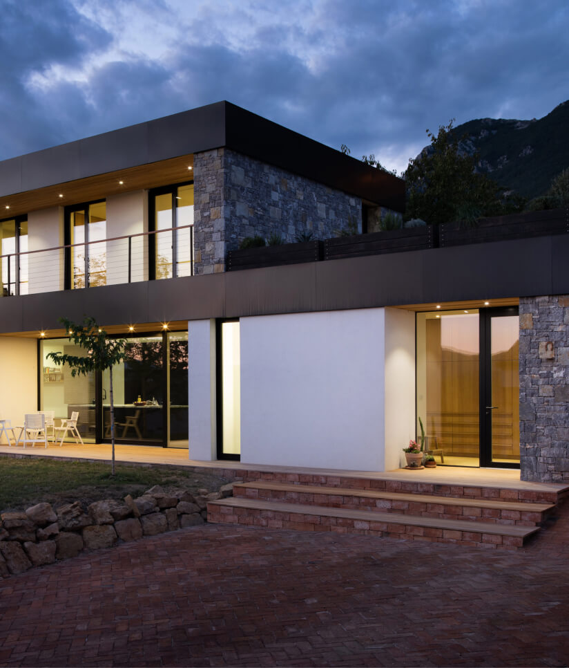 La construction durable est le moteur du développement des fenêtres et de leur importance croissante dans l’architecture des bâtiments modernes. La conception, l’installation et l’utilisation durables des fenêtres dans les bâtiments résidentiels doivent répondre à un certain nombre d’exigences : empêcher les pertes de chaleur, réduire la surchauffe à travers le verre en été, augmenter les apports solaires en hiver, apporter de la lumière naturelle, protéger contre le bruit, ventiler, etc… Il est presque impossible de répondre parfaitement à chacune des caractéristiques ci-dessus, mais avec les fenêtres modernes et la technologie disponible, nous pouvons toujours trouver le meilleur optimum pour toutes les exigences du bâtiment. Le fait est que le développement des fenêtres au cours des 20 dernières années a permis d’augmenter le vitrage et de faire en sorte que la proportion de surfaces transparentes par surface habitable nette dépasse largement les 20%, et dans certains cas et dans certaines pièces individuelles, nous parlons d’une enveloppe transparente à presque 100%. C’est également à cette époque que les produits standard ne suffisent plus et que la production de fenêtres en bois sur mesure a commencé. Lorsque la construction à faible consommation d’énergie était à son apogée en Europe il y a 10 ans, il était évident que les grandes surfaces vitrées devaient se trouver sur le côté sud des bâtiments résidentiels (en raison des importants apports solaires en hiver) et que le côté nord devait être évité autant que possible (en raison des importantes pertes de chaleur). Aujourd’hui, nous savons que même dans les endroits qui ne nous permettent pas d’avoir cette orientation du bâtiment, il est très possible de placer des surfaces vitrées sur les côtés est ou nord du bâtiment sans perte de chaleur significative. Outre l’efficacité énergétique des fenêtres, d’autres facteurs ayant un impact significatif sur le confort des occupants (comme une lumière suffisante) prennent de plus en plus d’importance. L’architecture moderne se tourne donc également vers les grandes surfaces transparentes en raison du développement d’autres matériaux de construction et de la méthode de construction elle-même : matériaux de murs extérieurs hautement isolants, matériaux pouvant assurer l’étanchéité des différents assemblages structurels et empêcher ou réduire les ponts thermiques, et nouveaux systèmes de chauffage domestique (chauffage par le sol, chauffage par panneaux) qui garantissent une température ambiante constante et uniforme quelles que soient les conditions météorologiques extérieures. Les grandes surfaces transparentes sont généralement constituées de vitrages fixes et d’éléments d’ouverture qui s’étendent entièrement du sol au plafond d’un étage, parfois même sur deux étages ou plus. Ce type de vitrage est typique des pièces d’habitation communes (salon, salle à manger, cuisine), tandis que les chambres à coucher sont davantage caractérisées par des fenêtres classiques ou par l’utilisation de portes de balcon donnant accès à une terrasse ou de portes de balcon précédées d’une balustrade en verre pour se protéger contre les chutes dans les profondeurs (c.-à-d. L’utilisation de différents systèmes de ventilation a réduit le nombre de vitrages ouvrants pour la ventilation des bâtiments, car cela n’est pas strictement nécessaire lorsque la ventilation est utilisée correctement. Cependant, il est vrai que le positionnement correct des fenêtres (sur des côtés opposés du bâtiment et à différents étages) qui peuvent être utilisées pour la ventilation est une manière intelligente et durable de les utiliser, en particulier pour le refroidissement nocturne des bâtiments pendant la période estivale.
