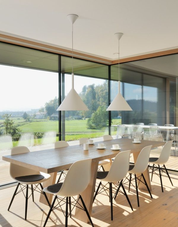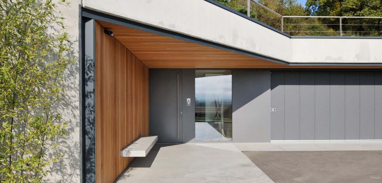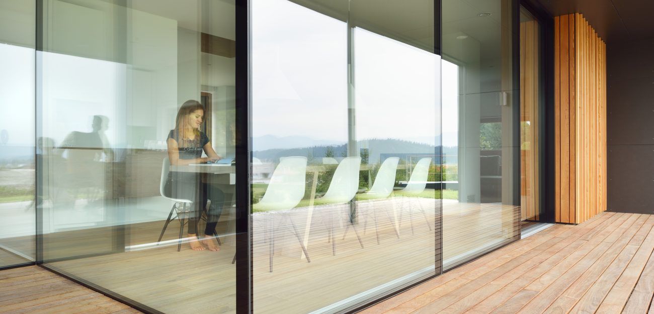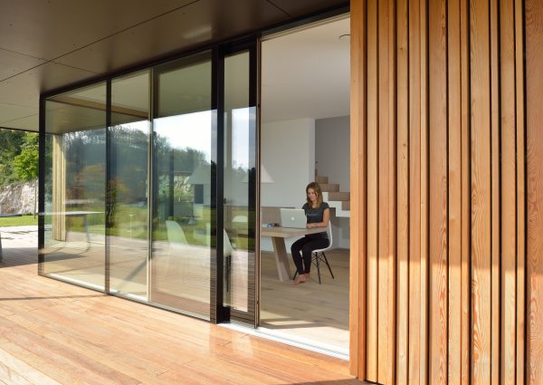 Le plateau supérieur forme l’espace privé autour de la maison, qui est relié aux espaces de vie par de grandes surfaces vitrées.